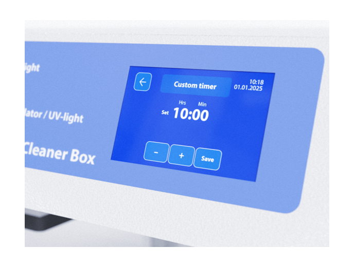 8. 計時器能控制 UV 燈開啟時間;可設定1 min-24 hrs/無間斷式