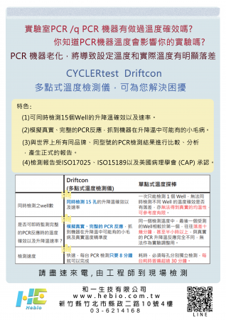 • PCR/Q-PCR 溫度確效 Thermocycler Temperature Calibration